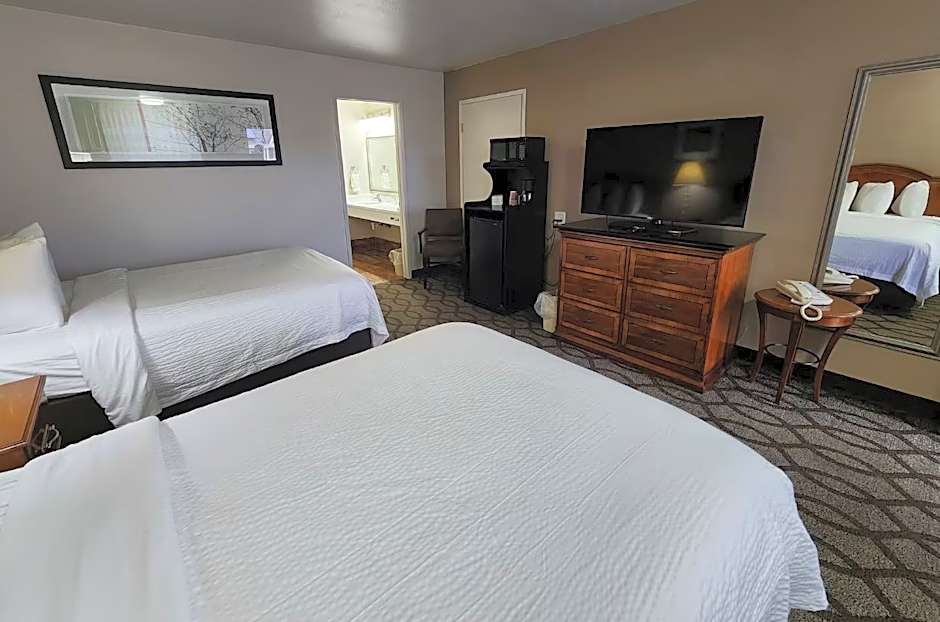 A cable TV with refrigerator, microwave and Wi-Fi are all included in this room.